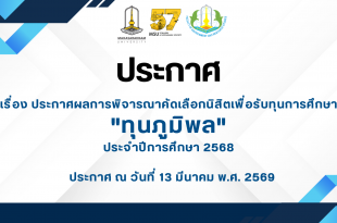 Read More »ประกาศ คณะสิ่งแวดล้อมและทรัพยากรศาสตร์ เรื่อง ประกาศผลการพิจารณาคัดเลือกนิสิตเพื่อรับทุนการศึกษา “ทุนภูมิพล”ประจำปีการศึกษา 2568