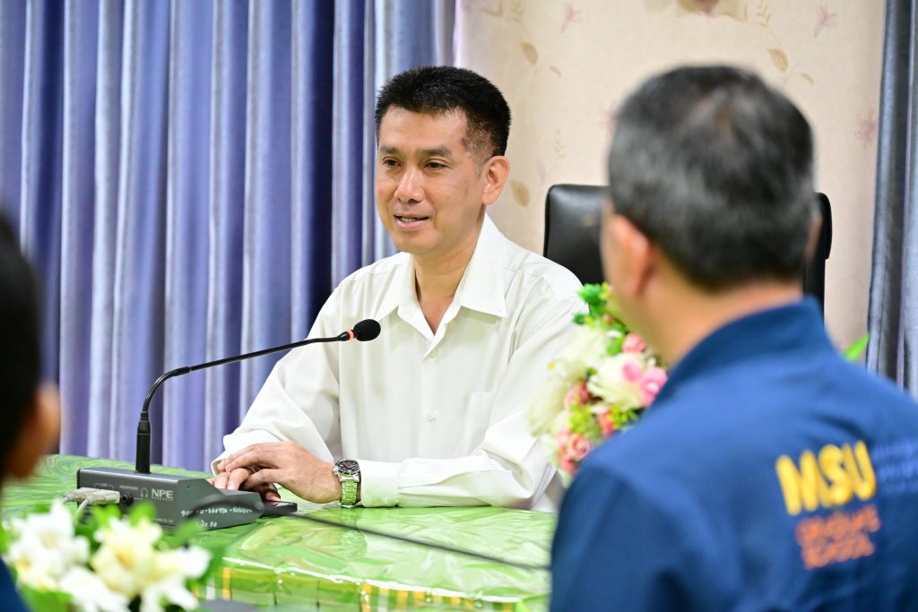 โดยมี รองศาสตราจารย์ ดร.อดิศักดิ์ สิงห์สีโว คณบดีคณะสิ่งแวดล้อมและทรัพยากรศาสตร์ มหาวิทยาลัยมหาสารคาม พร้อมด้วยหัวหน้ากลุ่มงานต่างๆ และบุคลากรสำนักงาน ร่วมให้การต้อนรับและแสดงความยินดีในครั้งนี้