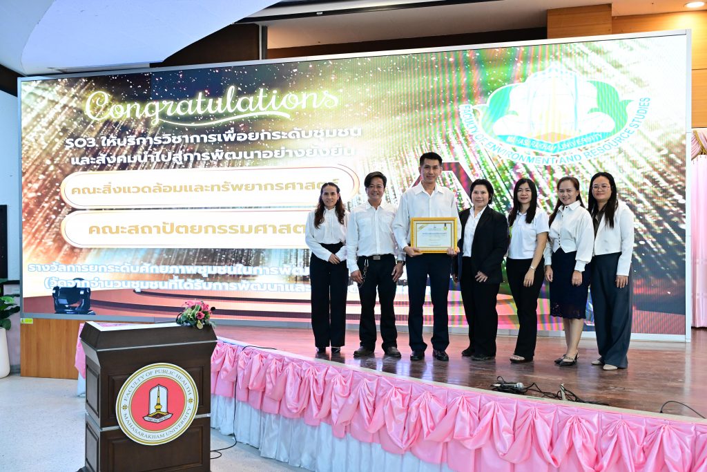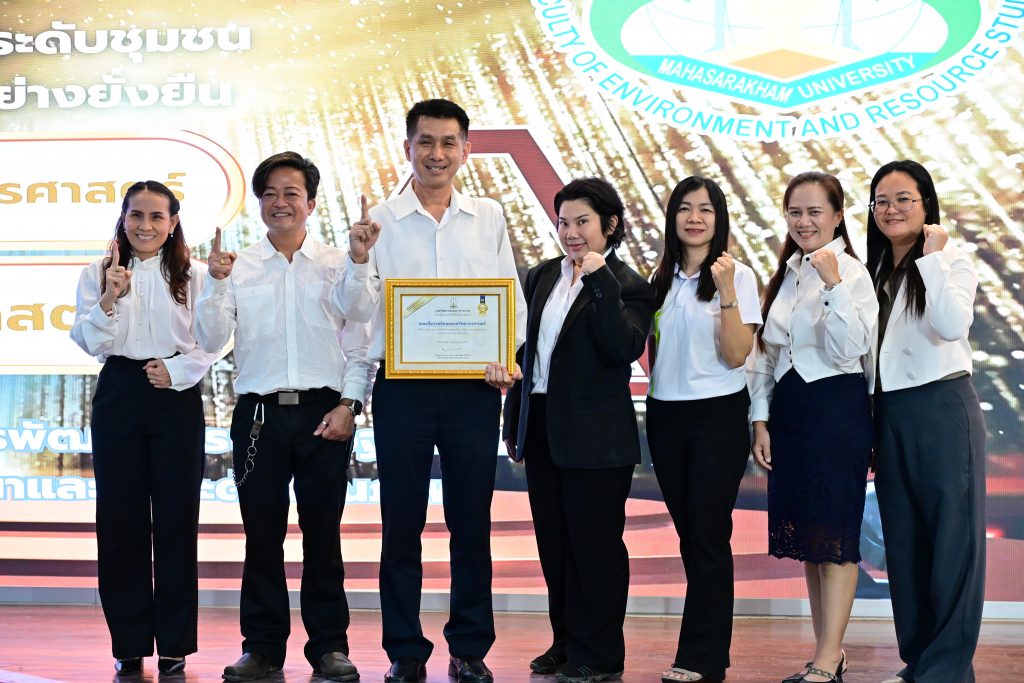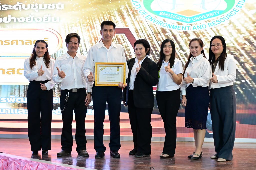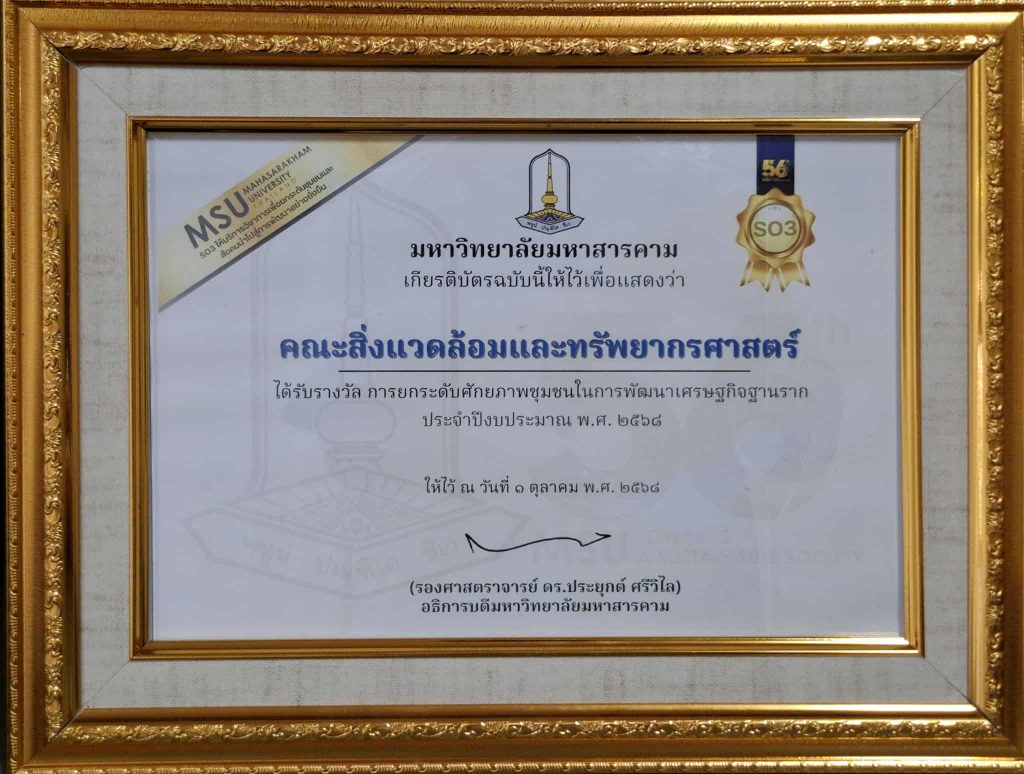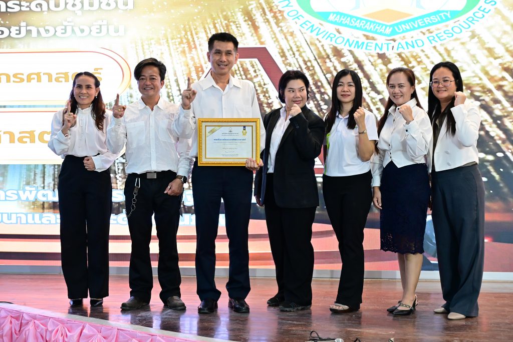 นำโดย รองศาสตราจารย์ ดร.อดิศักดิ์ สิงห์สีโว คณบดีคณะสิ่งแวดล้อมและทรัพยากรศาสตร์ มหาวิทยาลัยมหาสารคาม พร้อมด้วยผู้บริหาร คณาจารย์ และบุคลากร ขึ้นรับรางวัล “MSU Quality Performance Award 2025”ประเภทรางวัล SO3 การให้บริการวิชาการเพื่อยกระดับชุมชนและสังคมนำไปสู่การพัฒนาอย่างยังยืนรางวัลการยกระดับศักยภาพชุมชนในการพัฒนาเศรษฐกิจฐานราก (วัดจากจำนวนชุมชนที่ได้รับการพัฒนาและยกระดับคุณภาพ)ประจำปีงบประมาณ พ.ศ. 2568 ในโครงการถ่ายทอดนโยบายสู่การปฏิบัติ ประจำปีงบประมาณ พ.ศ. 2569 ณ ห้องประชุม 504 ชั้น 5 คณะสาธารณสุขศาสตร์ มหาวิทยาลัยมหาสารคาม