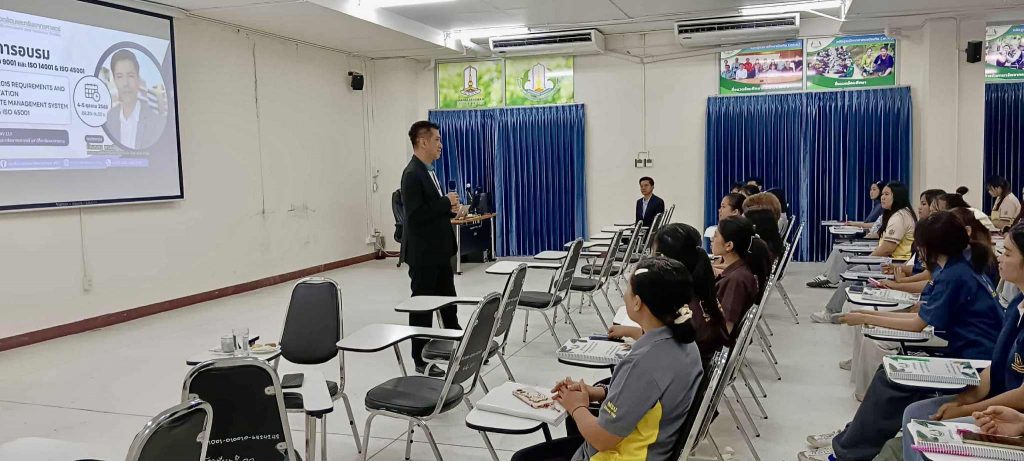 เมื่อวันที่ 4-5 ตุลาคม 2568 เวลา 08.30 – 16.30 น. คณะสิ่งแวดล้อมและทรัพยากรศาสตร์ มหาวิทยาลัยมหาสารคาม ได้จัดโครงการอบรมาตรฐาน ISO 9001 และ ISO 14001 & ISO 45001 หัวข้อการอบรม 1. ISO 9001:2015 Requirements and Implementation 2. Integrate Management System ISO 14001 & ISO 45001 โดยมี รองศาสตราจารย์ ดร.อดิศักดิ์ สิงห์สีโว คณบดีคณะสิ่งแวดล้อมฯ เป็นประธาน โดยมีนิสิตระดับปริญญาตรี เข้าร่วมโครงการโดยพร้อมเพรียง ณ ห้องเรียน ENV 110 คณะสิ่งแวดล้อมและทรัพยากรศาสตร์ วิทยากร คือ คุณปัณณธร พรมลี กรรมการผู้จัดการบริษัท ไอเอสโอ เวิลด์ สไมล์ จำกัด