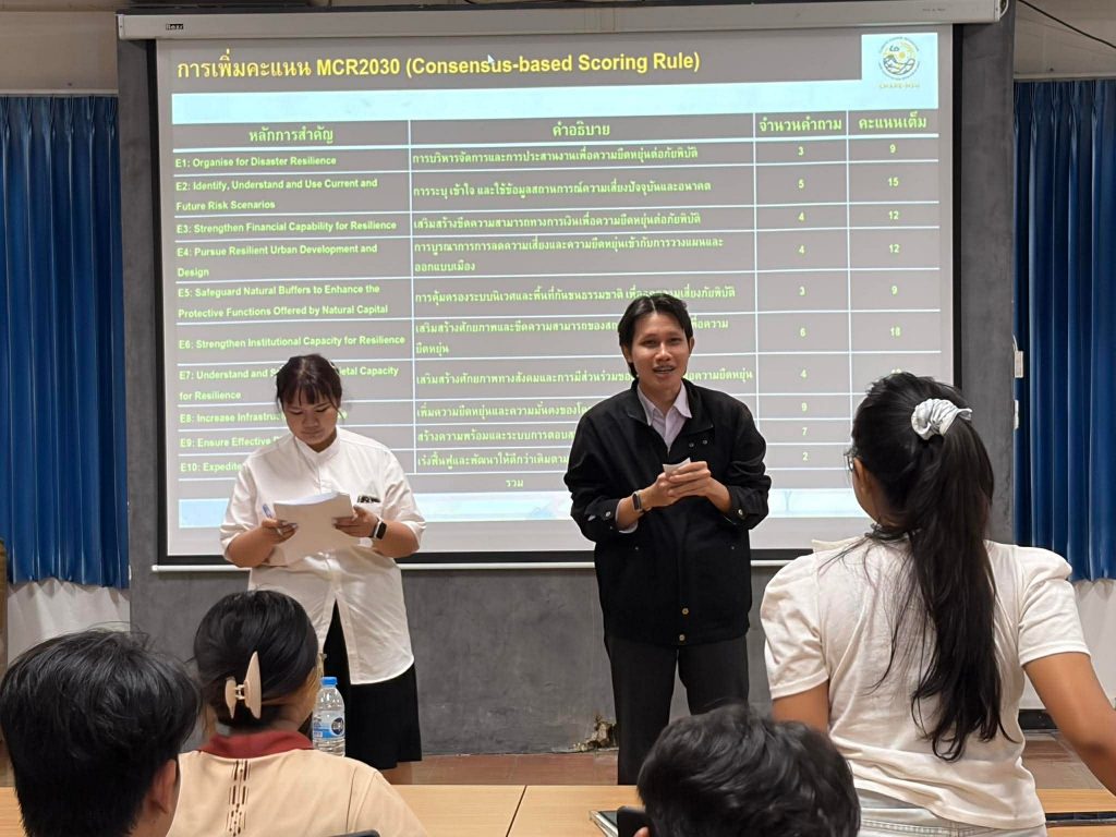 เมื่อวันที่ 10 มีนาคม 2569 ที่ผ่านมา หน่วยปฏิบัติการวิจัยการเปลี่ยนแปลงสภาพภูมิอากาศ การบรรเทา และการปรับตัว (CMARE) คณะสิ่งแวดล้อมและทรัพยากรศาสตร์ มหาวิทยาลัยมหาสารคาม จัดโครงการ เกมจำลองบทบาทเมืองรีซิเลียนซ์ (MCR2030 Simulation Game) เพื่อพัฒนาศักยภาพนิสิตด้านการลดความเสี่ยงจากภัยพิบัติและการพัฒนาเมืองอย่างยั่งยืน สำหรับนิสิตระดับปริญญาตรี MSU Homeroom สำนักศึกษาทั่วไป มหาวิทยาลัยมหาสารคาม จำนวน25 คน