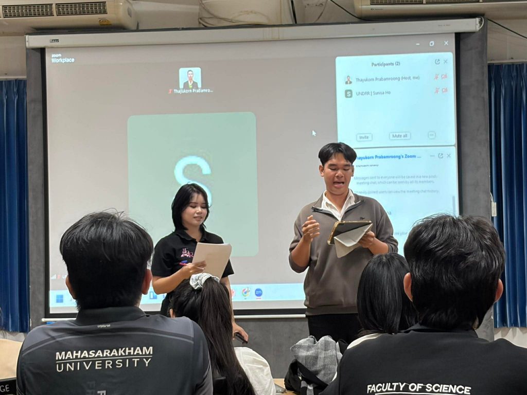 ในการนี้ ได้รับเกียรติจาก คุณสุนิสา โฮ เจ้าหน้าที่บริหารโครงการ (Project Officer)จากสำนักงานเพื่อการลดความเสี่ยงจากภัยพิบัติแห่งสหประชาชาติ (UNDRR) สำนักงานภูมิภาคเอเชียและแปซิฟิก เป็นวิทยากรบรรยายออนไลน์ผ่าน Zoom Meeting ในหัวข้อ “เยาวชนกับการขับเคลื่อนเมืองรีซิเลียนซ์ต่อภัยพิบัติ: บทบาท การเรียนรู้ และกรณีศึกษา MCR2030” เพื่อเปิดมุมมองให้นิสิต เห็นความสำคัญของการลดความเสี่ยงจากภัยพิบัติในระดับสากลและระดับพื้นที่